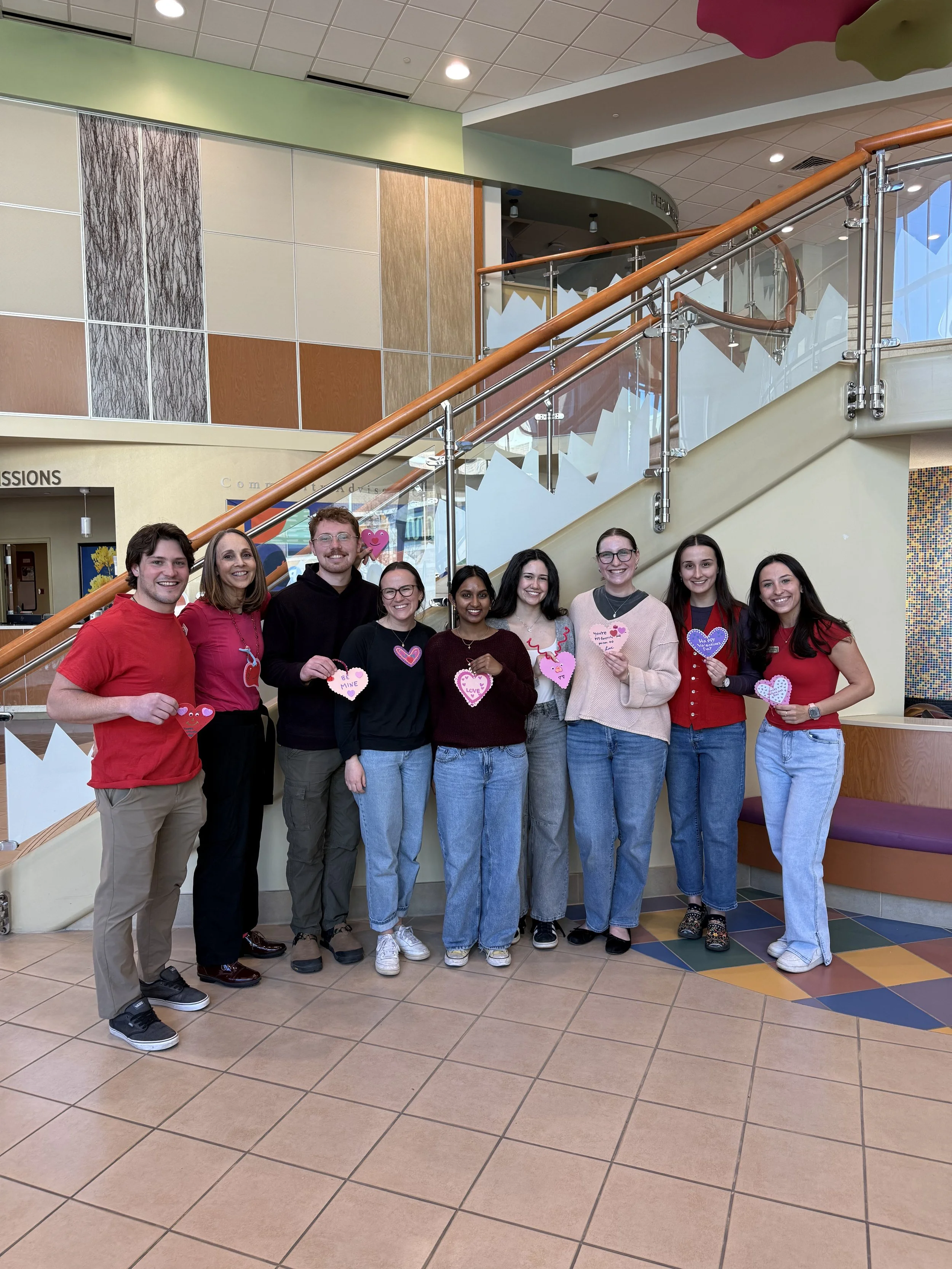 Our Hospital Homies team brought a group of University of Colorado Boulder volunteers to the hospital to help deliver the valentines along with candy and small treats to patients and families. The collaboration between high school and college students created a meaningful opportunity for young people to give back while spreading kindness and joy to children who needed it most.