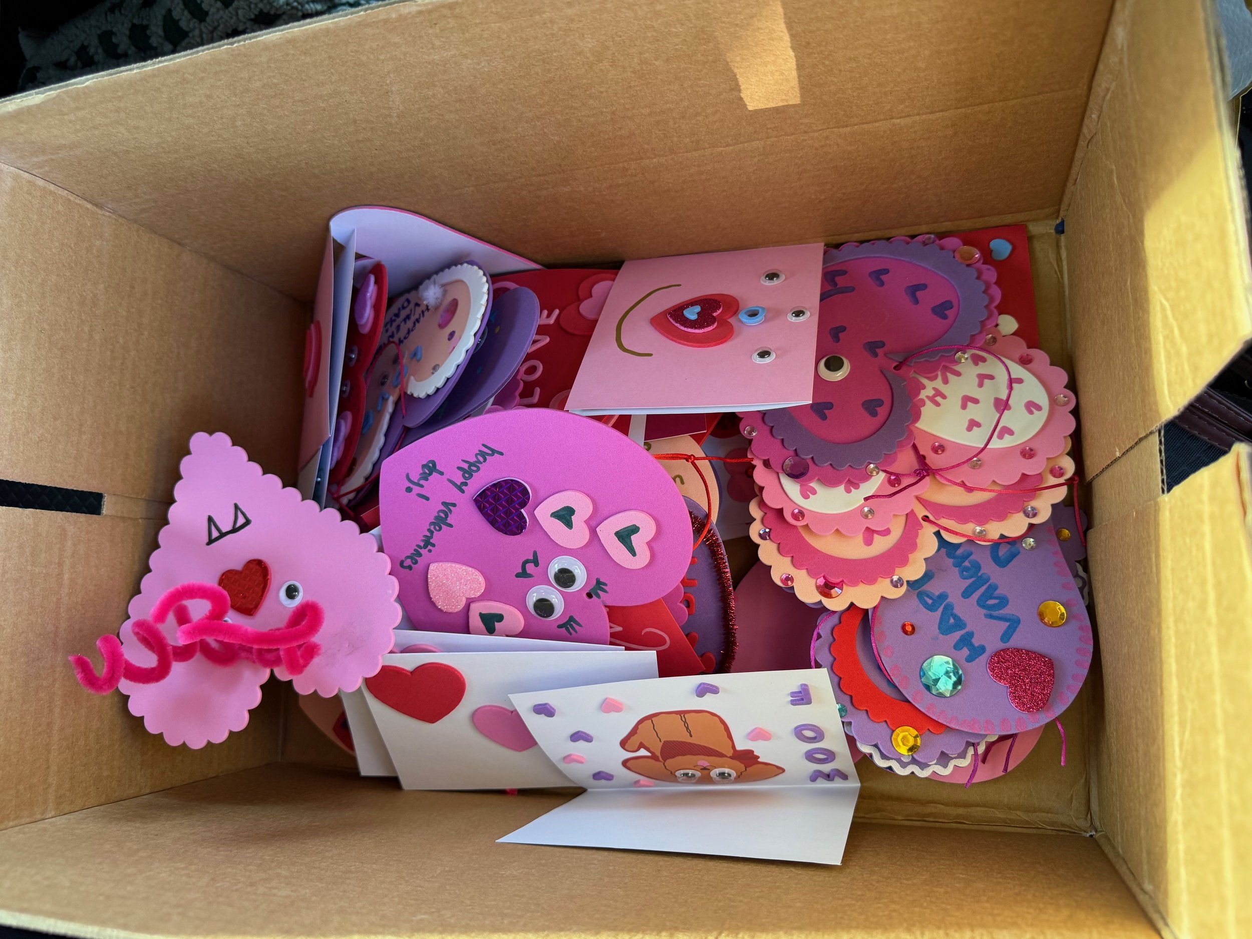 This Valentine’s Day, Hospital Homies partnered with students from Holy Family High School to create handmade Valentine’s cards for pediatric patients. During the visit, Holy Family students spent time designing colorful, thoughtful cards filled with encouraging messages and decorations—each one made to bring a smile to a child spending the holiday in the hospital.